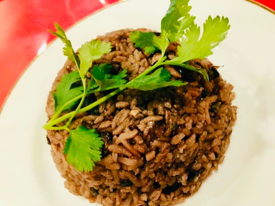 当店でも人気の、自家製ローストポークとキューバ料理の定番、黒インゲン豆の炊き込みご飯のセットです。
